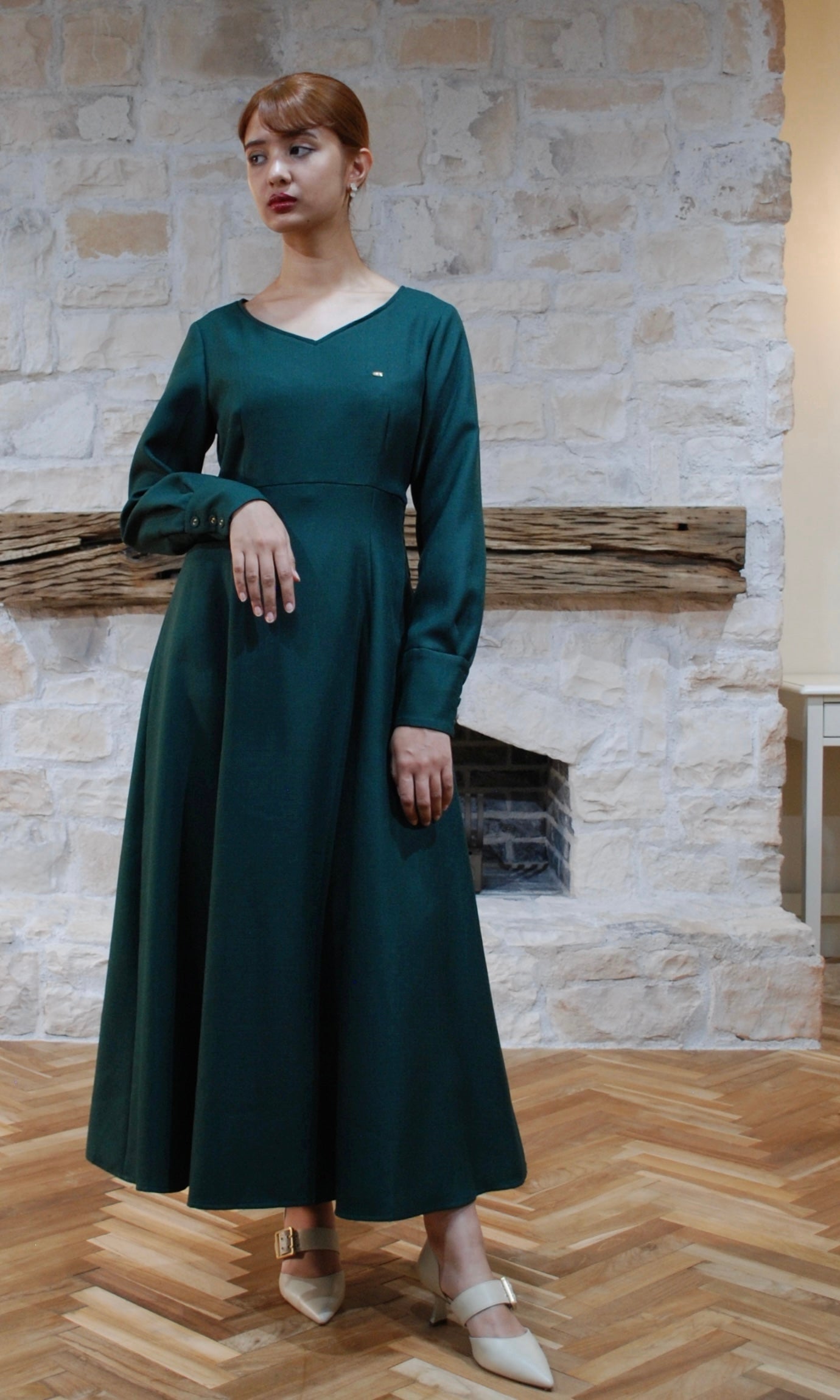 ダークグリーンのお色味は深く落ち着いた印象の中に、大人の女性の強さと華やかさ合わせた印象を持ちます。