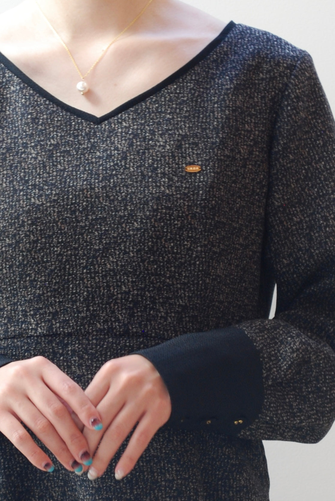 Vネック仕様にすることで女性らしいデコルテを魅せ、