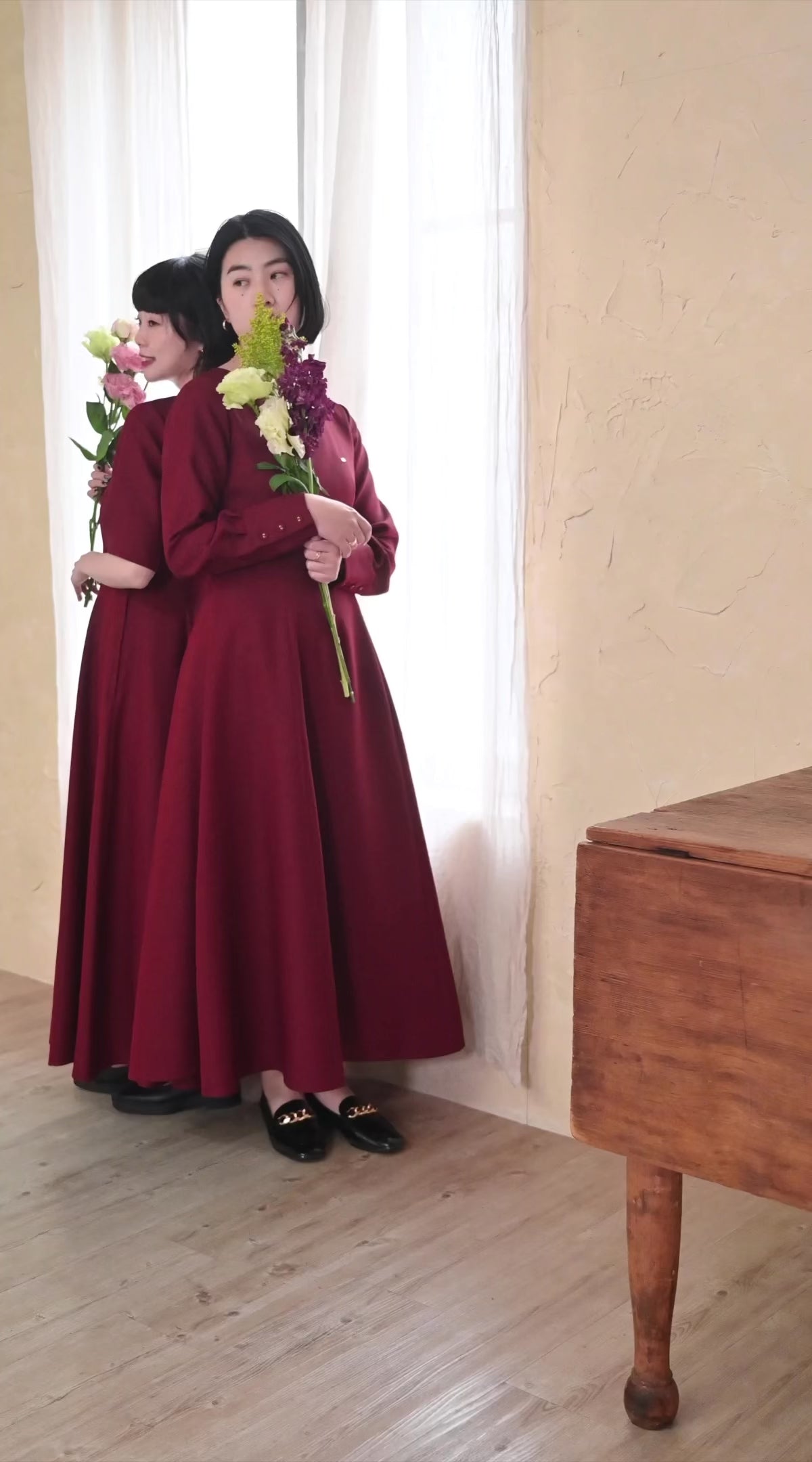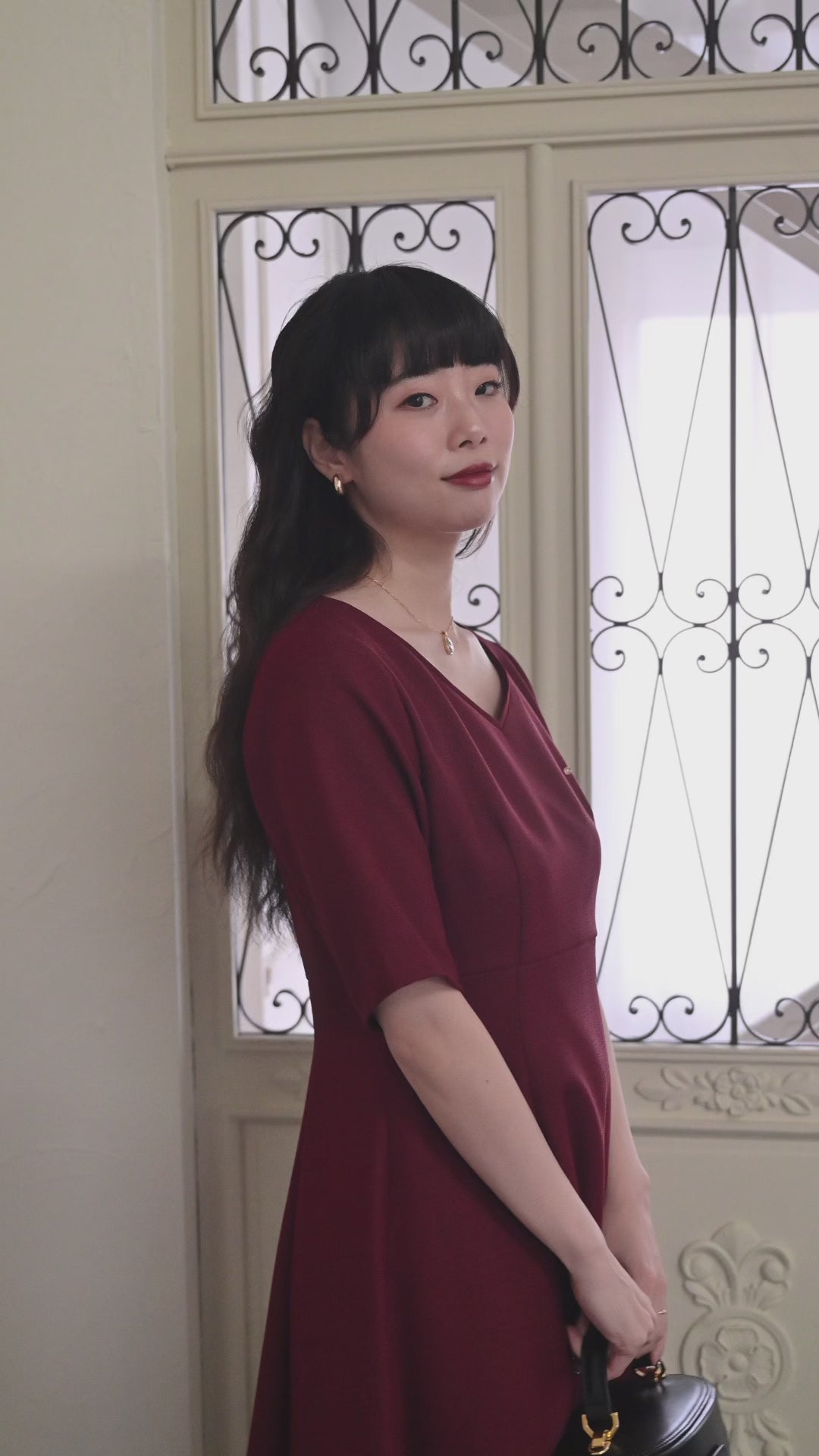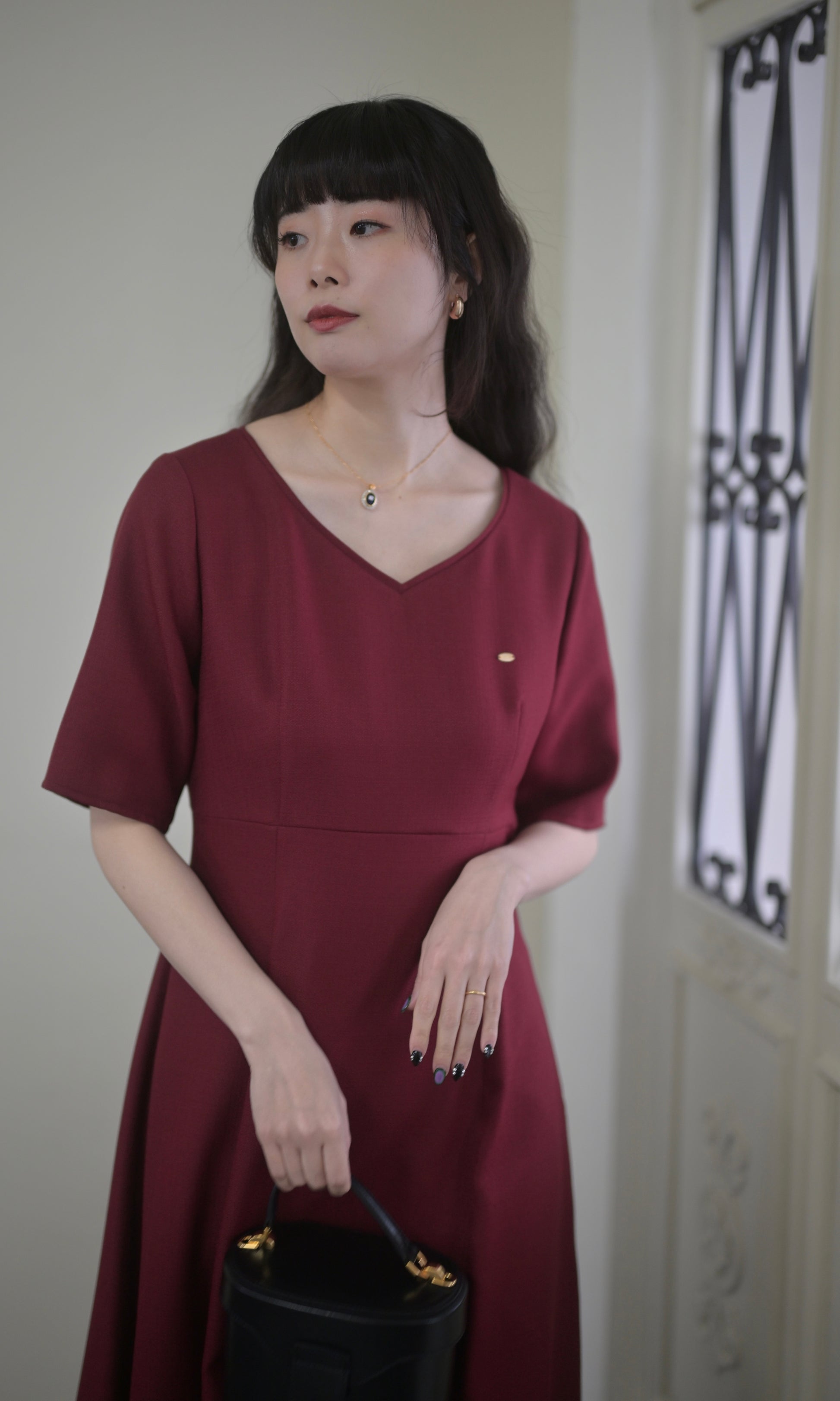 首元はVネック仕様にすることで女性らしいデコルテを魅せ、袖、袖口、腰回りはボリュームを抑えることで上からジャケットやコートを羽織りやすいデザインに仕上げました。