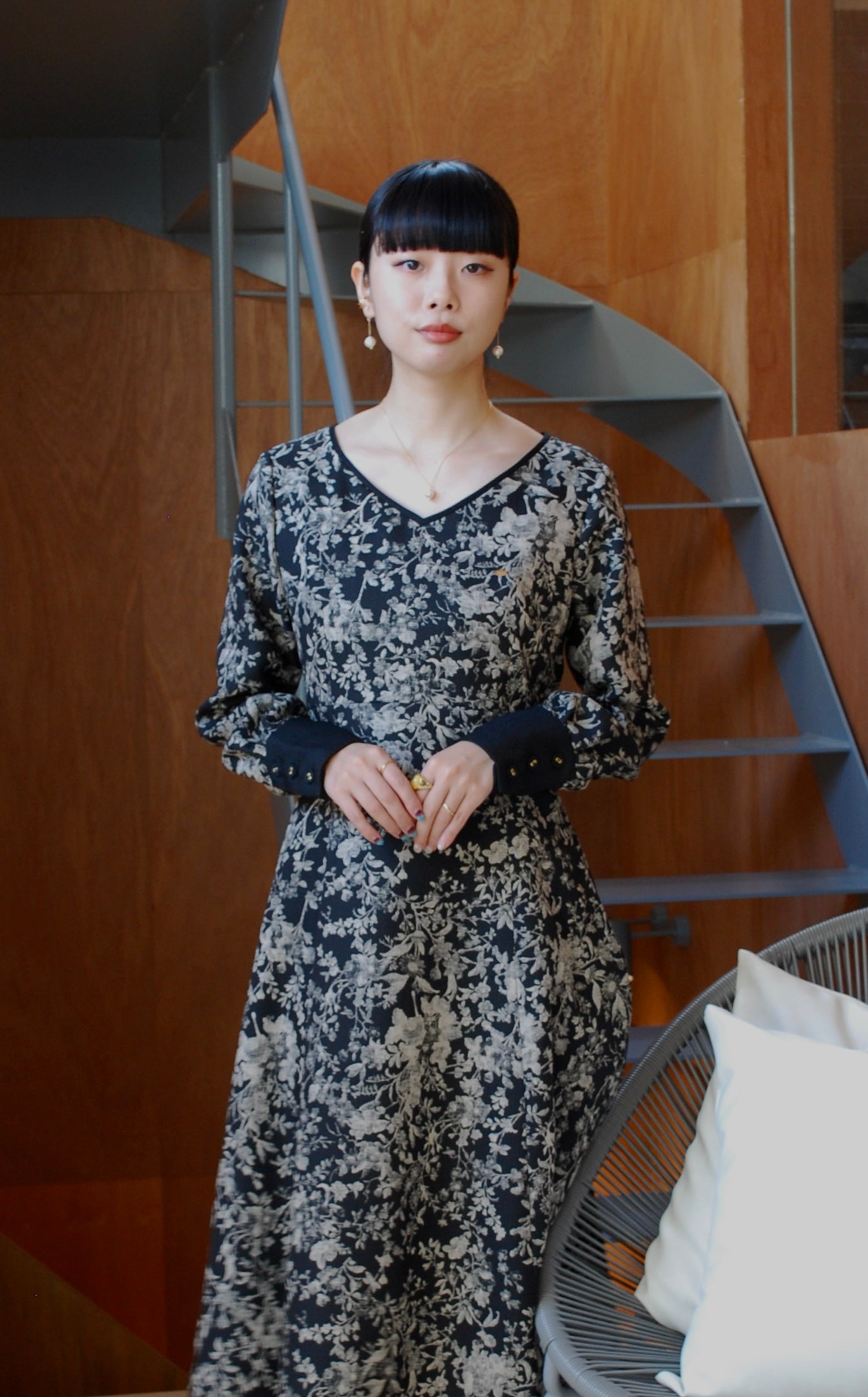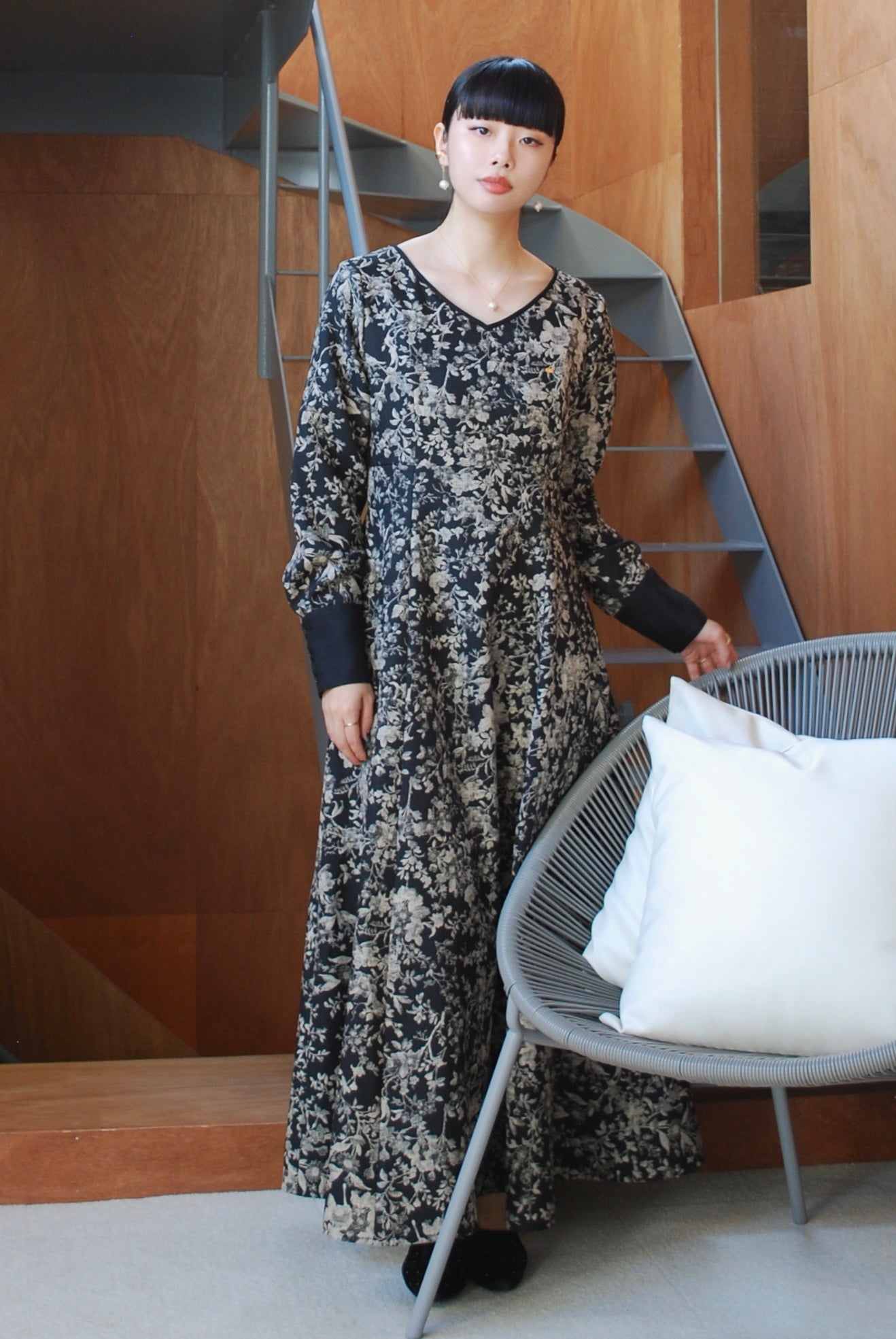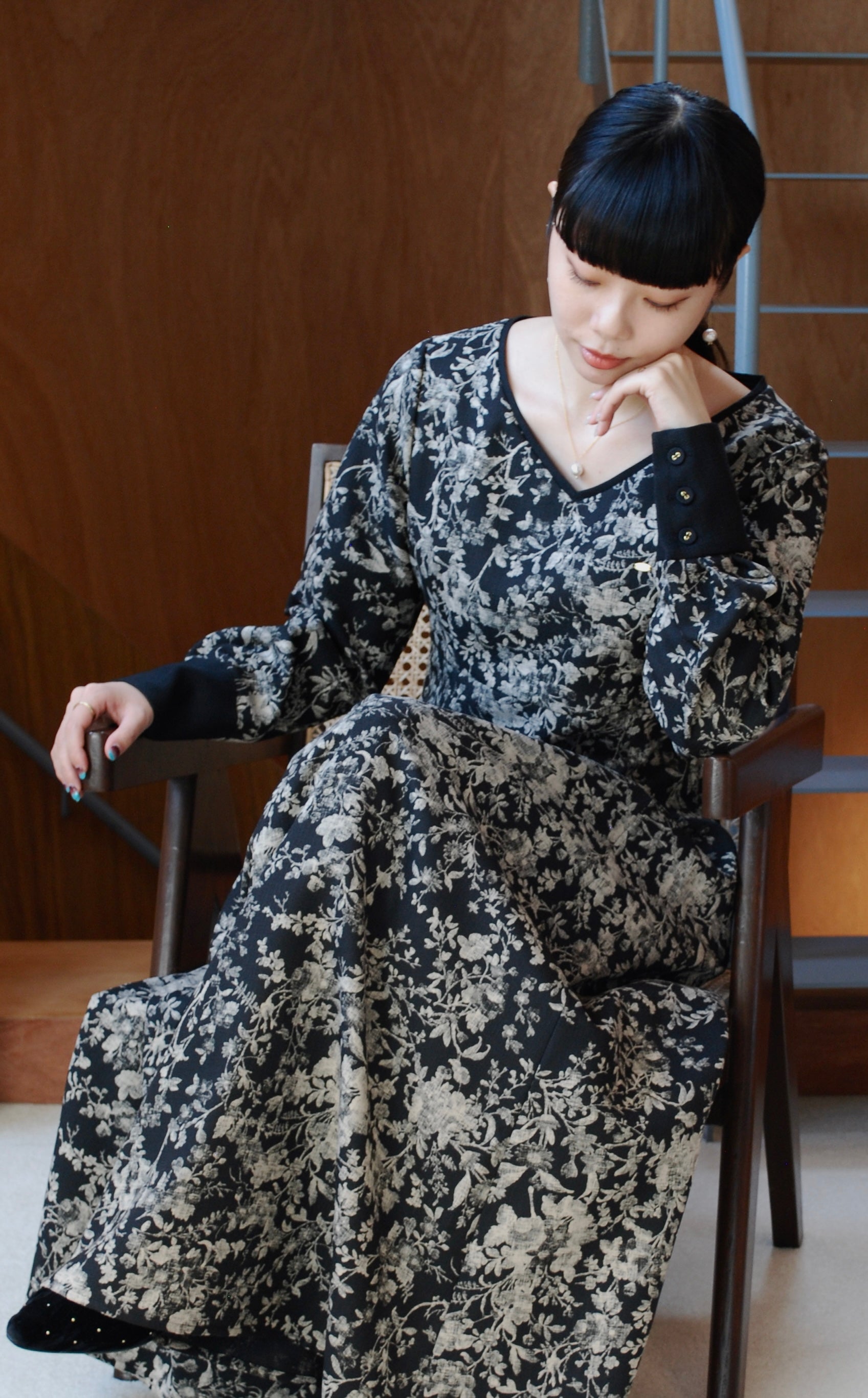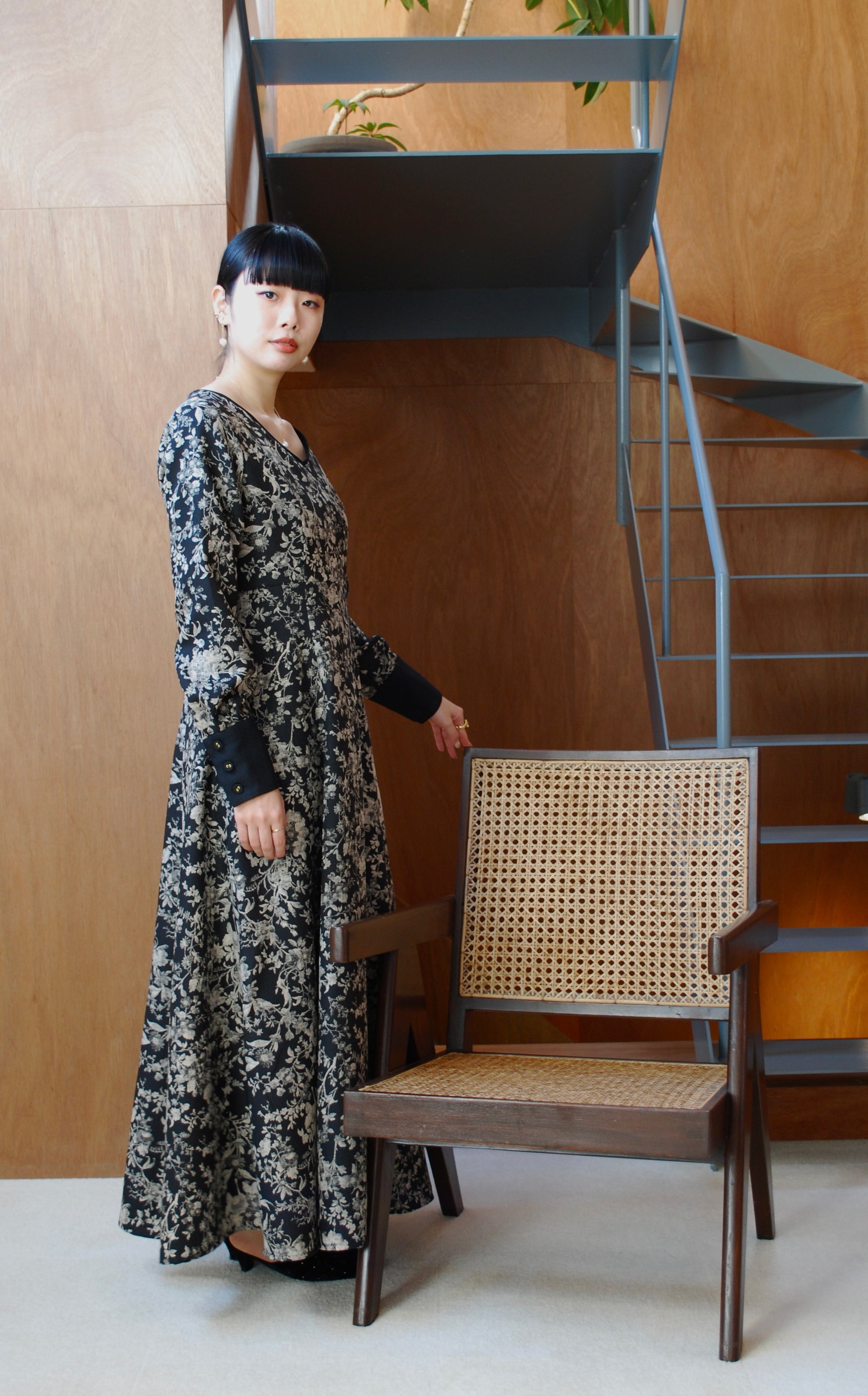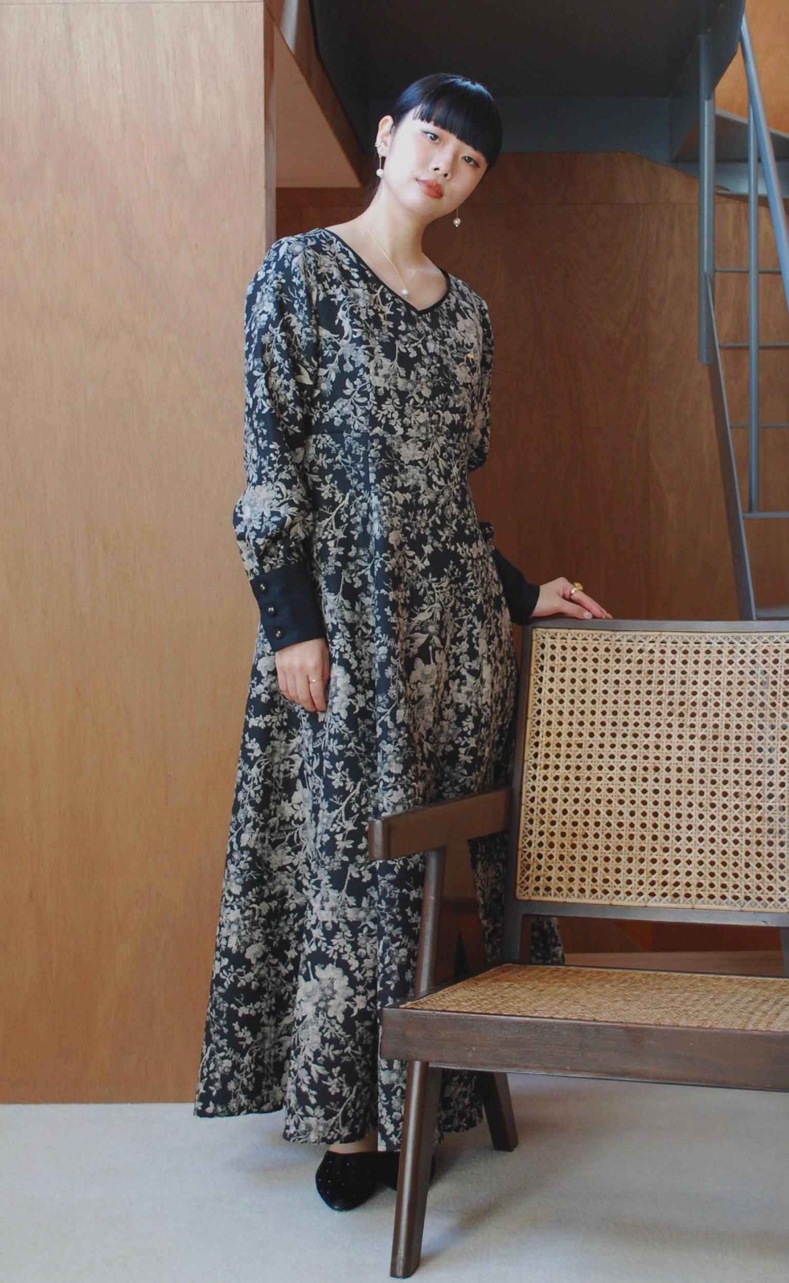 WHITE–BLACKは比較的クールな印象になり、かっこよく花柄ワンピースを着たい。可愛すぎない大人の花柄が好き。といったお客様にぴったりな、花柄ワンピースです。
