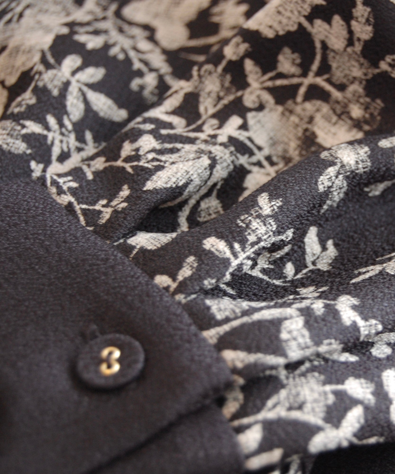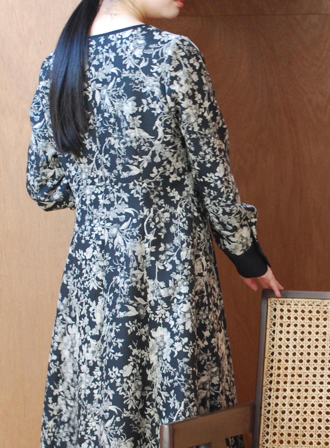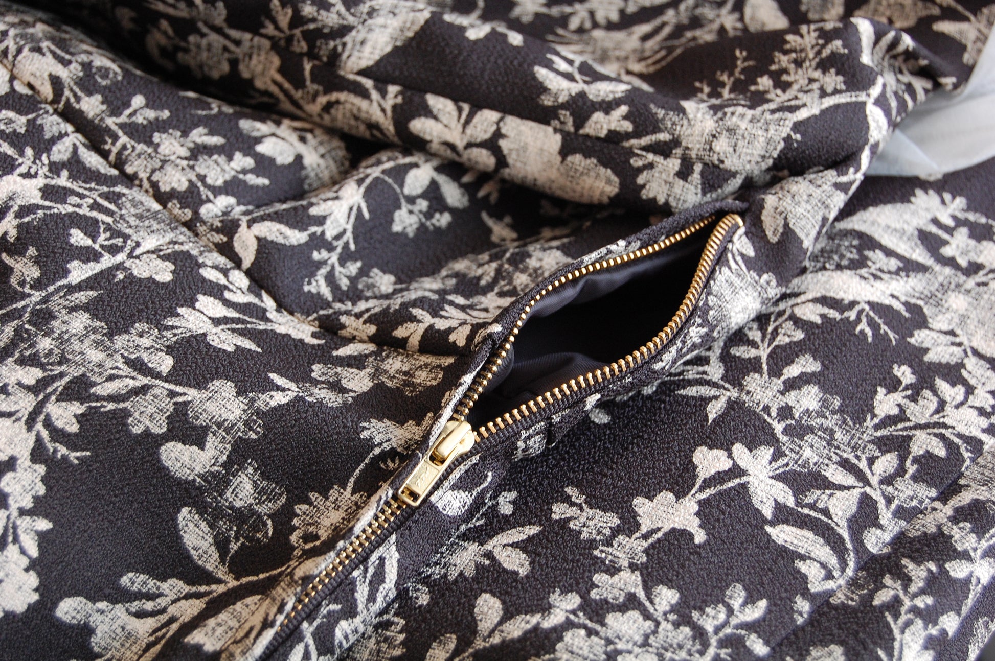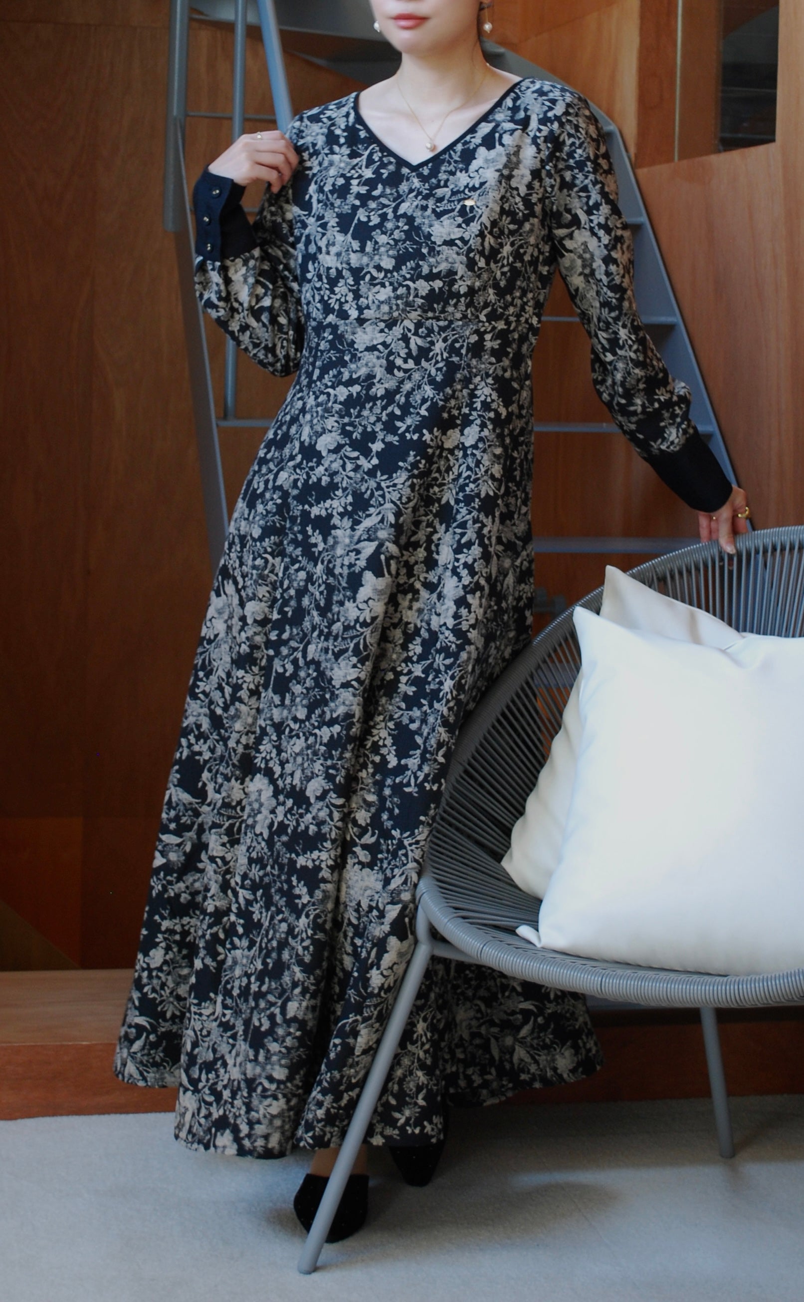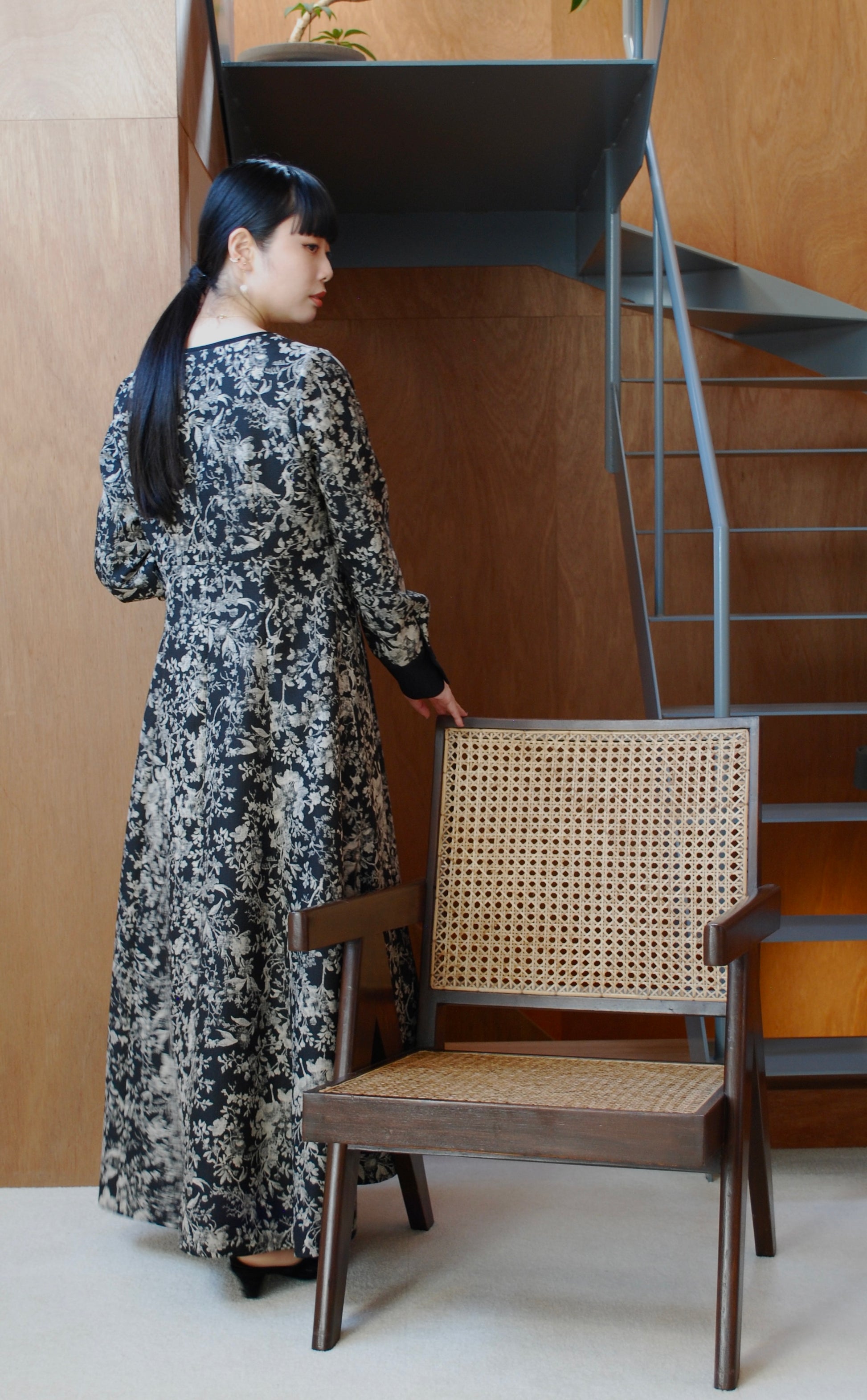 WHITE–BLACKは比較的クールな印象になり、かっこよく花柄ワンピースを着たい。可愛すぎない大人の花柄が好き。といったお客様にぴったりな、花柄ワンピースです。