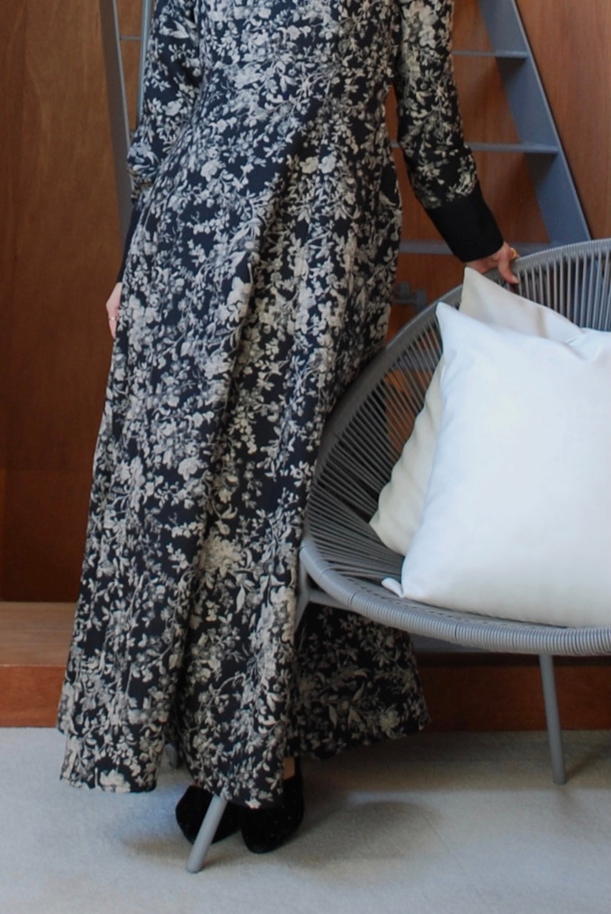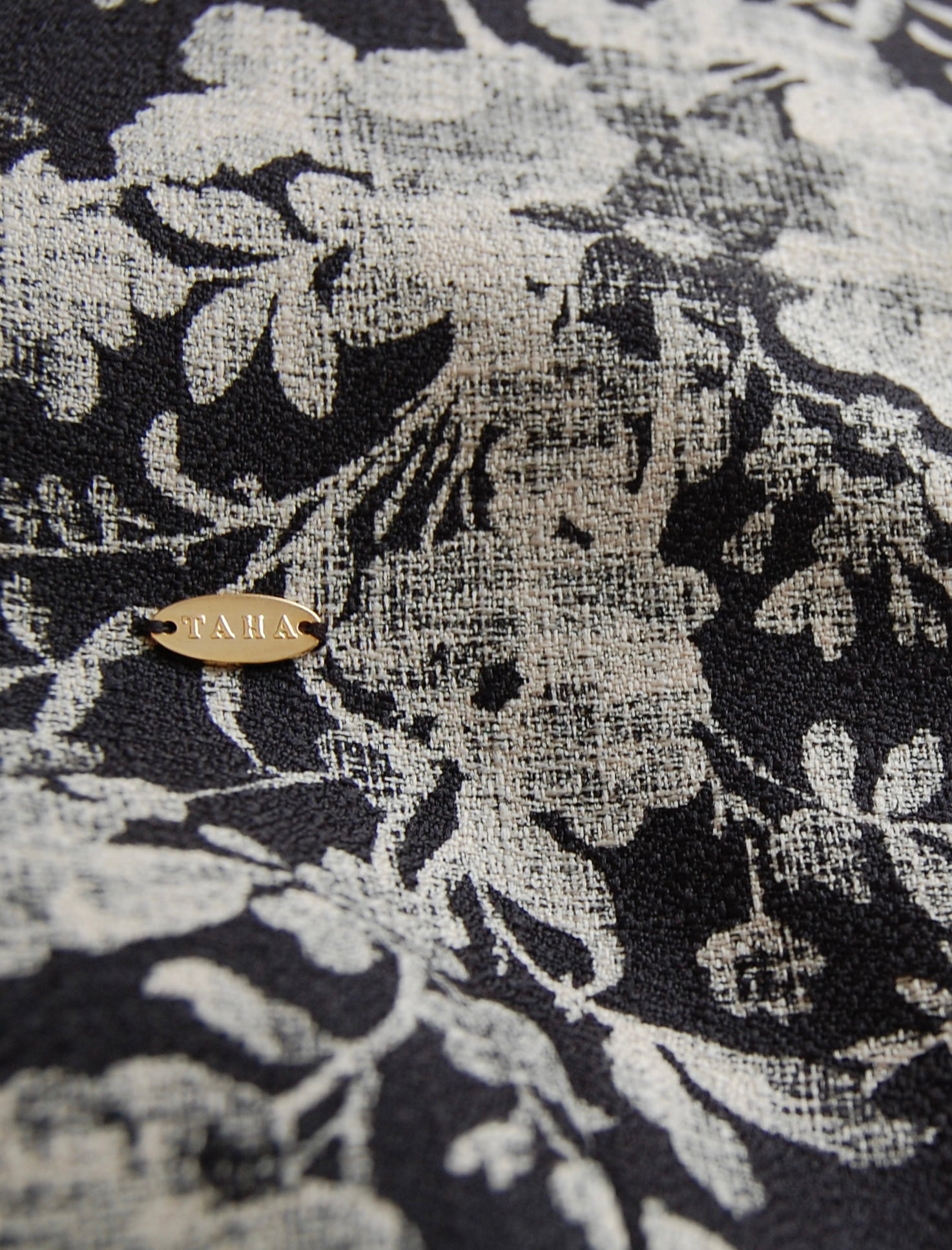 『ホワイトとブラックのの配色』で花柄ワンピース且つ、大人の雰囲気な花柄は、あまり世の中に出回ってないアイテム。だからこそ、TAHAのWHITE-BLACKの走れるドレスがおすすめ。